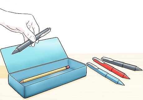 Choose your pens and pencils wisely. If possible, test them before you buy. This can save you time and trouble when you go to write. Once you find one style you like, buy multiples so you don't run out, or have a replacement for a lost utensil. Buy pens in blue and black for writing. Most teachers correct in another color (such as red, green, orange, etc.) , and thus prefer for students to use black or blue ink.
