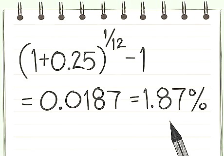 So lets say if annual return is 25%, then monthly return would be ((1.25)^(1/12)-1) = 0.0187 = 1.87%. So 1.87% would be the monthly return and if you raise to the power 12, you would get 25% as annual return.