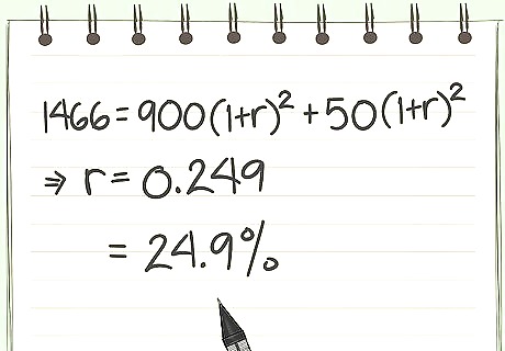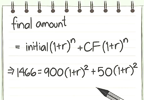 Calculation of return: The money weighted growth rate can be calculated as: final amount= (initial amount*(1+r)^n) + (CF*(1+r)^n). For this example it would be: 1466= (900*(1+r)^2) + (50*(1+r)^1). Here we are assuming that the month consists of 30 days and we are calculating 15 day return.