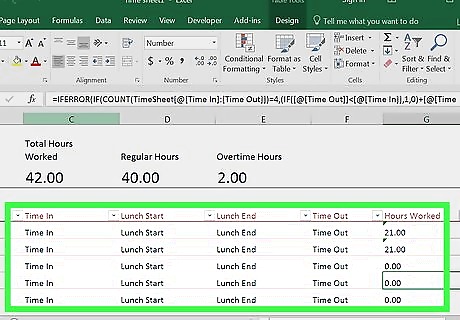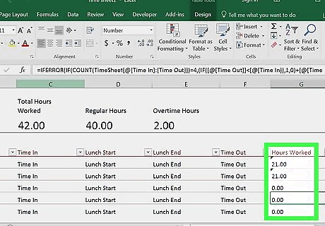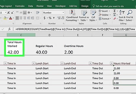 Add a "Total" row. Type Total into cell A10. This is where the total number of hours worked will go. If you want to use overtime as well, type Overtime into A11 and enter the overtime rate into B11.