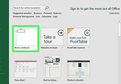 Click Blank workbook. This white icon is in the upper-left side of the Excel "New" page. Skip this step on a Mac.