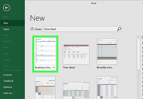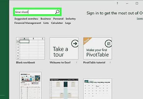 Type time sheet into the search bar and press ↵ Enter. This will search Microsoft's database of templates for time sheet templates.