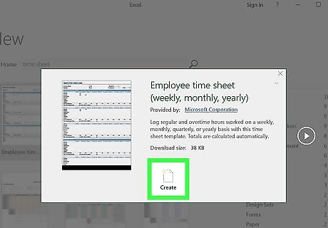 Click Create. It's to the right of the template's preview. Doing so will create the template in Excel.