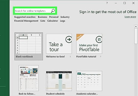 Click the search bar. It's at the top of the Excel window. On Mac, first click File in the upper-left corner, then click New from Template… in the drop-down menu.