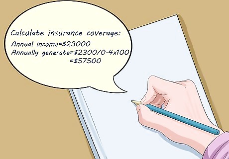 Calculate the insurance coverage amount. The goal is to determine the lump sum payment you need to generate $23,000 of annual income. When you receive a lump sum, you can invest that money to generate interest. Interest rates vary depending on how you choose to invest your money (dividend paying stocks can pay up to 6%, whereas money market funds may only pay 1%). Assume you can get 4% on your money. To determine how much money you would need to generate $23,000 annually (assuming a 4% interest rate), divide $23,000 by 0.04. $23,000/0.04 equals $575,000. Therefore, you will need $575,000 of total coverage. If you were to invest this money at a rate of 4%, it would provide your family with $23,000 of income per year. (Note that figures do not consider the use of any principal.)