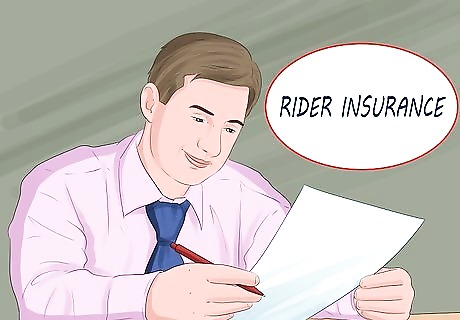 Consider adding riders. Riders are additional insurance coverages that you may or may not need based on your situation. For example, riders can protect you from damage not covered by most insurance policies, like flood or earthquake damage. If you live in an area where this type of damage is possible, you may want to consider adding a rider. Some items such as jewelry, art, etc. need to be specifically identified and may require special coverage as most general insurance has a per-item limit on liability.