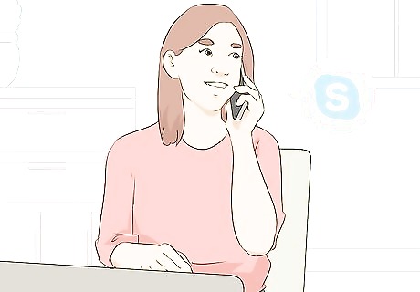 Call for a video or voice chat. Search for your friend’s name in your contact list. To make a call, press the red button that looks like it has a telephone on it. If the person accepts, you can begin talking. Each party will need working internet for the call to go through and work properly. If the person doesn’t answer on Skype, you can leave a voicemail that will be delivered to them the next time they open the application.