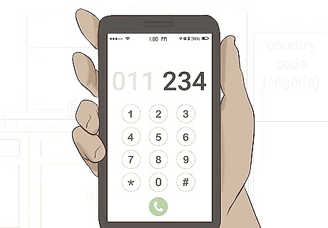 Add the country code 234 for Nigeria. After dialing the exit code, punch in the country code for Nigeria. Nigeria’s country code is 234. If you’re using a landline, don’t wait too long between dialing each code or you may have to start over again.
