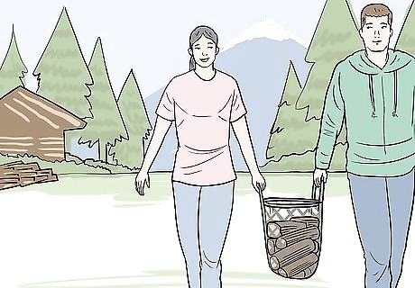 Collect firewood from the campgrounds or nearby sellers. Check for wood around your campsite and collect large pieces to burn during your stay. If there isn’t any wood around you, you may be able to buy some from the campground offices for a small fee. Make sure to get enough firewood for your entire stay so you don’t have to keep buying more. Don’t transport foreign wood into the campsite since it could have invasive bugs or bacteria that could infect the local wildlife.