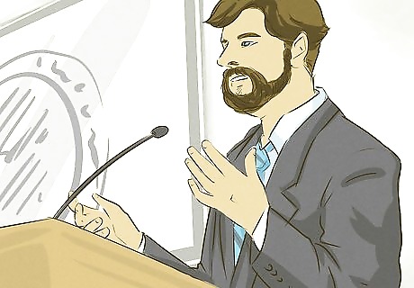 Research the issues. At some point in your campaign, you will either have to give a speech or participate in a debate. Besides needing to be able to clearly articulate your message and plan, you'll need to be able to point to specific evidence to support your position. Gather and memorize the results of relevant studies, surveys or testimonials. For example, if you are campaigning for a city council seat and want to work to help reduce crime, you'll need to be solid on what the current crime statistics are. You should also be able to point to other cities that have successfully been able to deal with similar problems and demonstrate your awareness of their effective strategies.