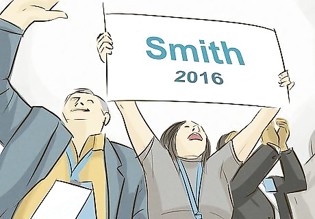 Blanket the town with your campaign materials. Whether you are creating hand-made posters or printing up fancy fliers and yard signs, it's important not to skimp on the volume of your advertising materials. In order to get your name ID up, make sure that voters will see reminders of you and your campaign at every turn.
