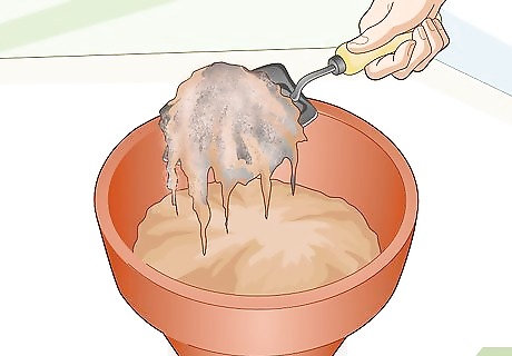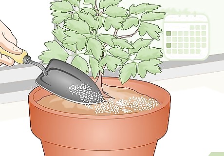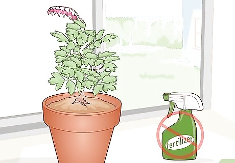 Add compost to the top layer of soil to add more nutrients for your plant. Bleeding hearts require a lot of fertilization to thrive. When you first pot your plant, use compost to nourish the soil. Mix the compost into the top 1 in (2.5 cm) of the soil or sprinkle it over the surface of the soil. You can buy compost at a gardening store or make it in a compost pile.