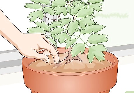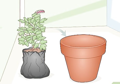 Pot your bleeding heart in a plantar that’s a little bigger than your plant. Bleeding hearts will grow into the container you choose for them. Choose a container that’s about 1 size larger than the pot your plant came in. Add potting soil to the bottom of the pot, then place your bleeding heart on the soil. Fill the rest of the pot with your potting soil and pack it lightly around the roots. Add more soil if necessary to fill up the pot.