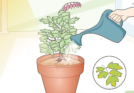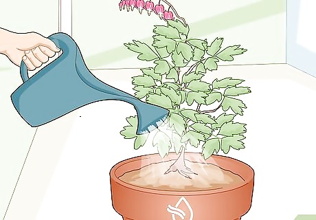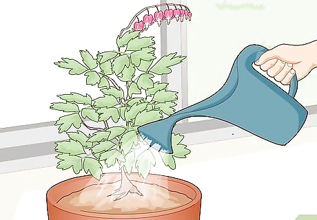 Water a dormant bleeding heart only when the soil is dry. While your bleeding heart needs frequent waterings during the growing season, it rarely needs water while it’s dormant. From November through February, check the soil weekly to see if it feels dry. Give the plant water if the soil is dry to the touch. If it's is outdoors, you may not need to water your plant if it’s rained recently.