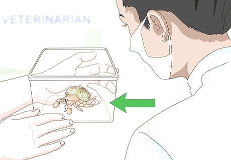 Consult a veterinarian if you see signs that your crab is sick. Hermit crabs don’t get sick very often. However, if you notice signs of sickness, like dry skin, or if your crabs are acting especially lethargic, they may be sick. Start by isolating the sick crabs and cleaning the whole tank. If that doesn’t solve the problem, consult with a veterinarian. The trip to the veterinarian may be quite stressful for the crabs, so be sure to only take them only if absolutely necessary.