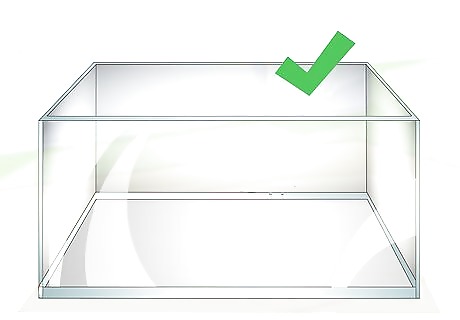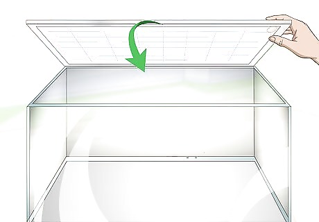 Add a secure lid to the tank. Hermit crabs are escape artists. If there is any possible way for the crabs to escape, they will almost always find it. Use a secure lid to ensure no crabs escape and that all the humidity stays in the tank. Select a lid with small air holes installed in it. If your tank has a mesh lid, you can cover it with plexiglass to prevent escapes. Hermit crabs need a humid environment, so this will also keep the moisture in the tank. Be sure to leave a little bit open at each end to allow for air flow.