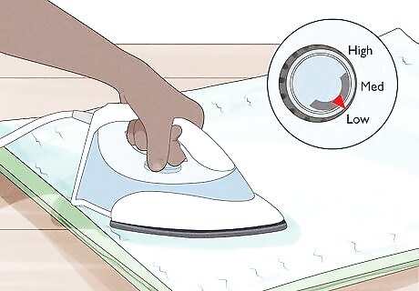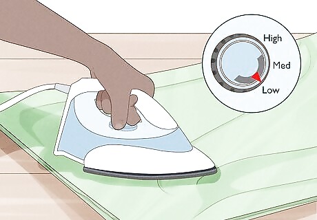 Iron on low heat. Use a low setting on your iron. Higher temperatures may burn the rayon. Iron the piece in sections and avoid pulling on the piece while ironing to prevent misshaping. Turn a rayon garment inside out when ironing, as the area that comes in contact with the iron may develop a slight sheen. Do not use any steam when ironing. Rayon loses strength when wet, and adding steam may make the fabric easier to damage while ironing.