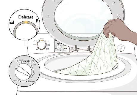 Read the label prior to purchase. Many rayon garments are hand wash or dry-clean only. Check the label to see if your rayon purchase is washer-safe. If it is not, know that you will have to put in extra effort to care for the fabric. Some rayon composite fabrics won’t require hand washing or dry-cleaning. If you prefer machine-washable fabrics, look for pieces that are a combination of rayon and a sturdier fabric, such as cotton. Handle with great care during laundering due to the fragility of rayon. Rayon can even dissolve during laundering, so it's finickiness needs to be taken into account.