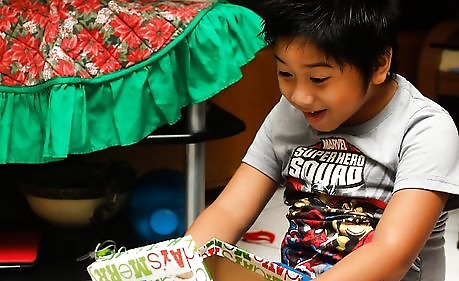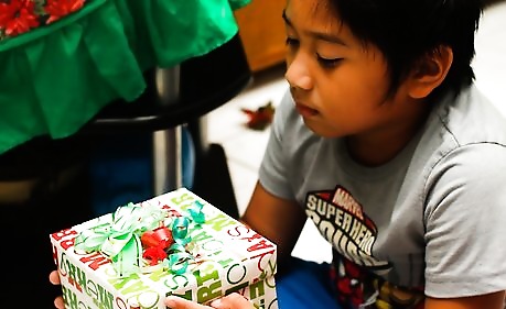 Go to where the presents are and choose a present you want to see. Make sure it is yours because you don't want to mess up someone else's present by accident.
