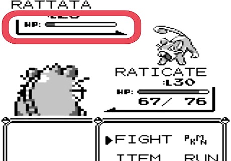 Reduce the Pokémon's HP to 33% percent or lower. The trick is to get its health below that percentage without letting it faint. Use a combination of weak and medium power attacks to do this. See the numbers after each technique? These are called the Power Points or PP. Generally, the higher the PP, the weaker the attack. In these games putting Pokémon below 33% HP does not increase the catch rate further.