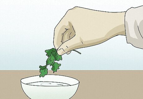 Eat the Karpas. Dip a vegetable, usually parsley, in saltwater and eat it. The vegetable is a symbol of the humble origins of the Jewish people. The salt water is a symbol of the tears shed due to slavery.