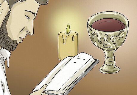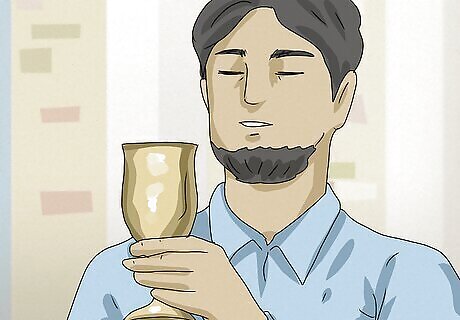 Say the Kiddush blessing over wine in honor of Passover. Read the Kiddush blessing from the Haggadah, light the candles, and enjoy a cup of wine with those gathered. You can then pour the second cup of wine but don't drink it yet.