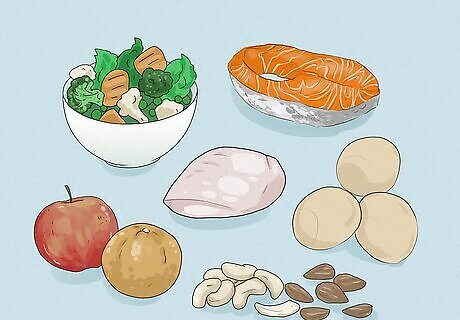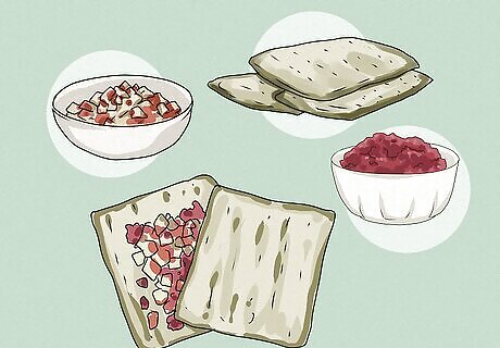 Eat fresh produce, matzo, and other kosher foods during Passover. Raw fruits and vegetables are considered kosher, along with chicken, turkey, most cuts of beef, venison, goat, and fish. Eggs, nuts, and dairy products are also fine to eat. Processed food must have a "Kosher for Passover" label on it to be considered kosher for Passover. Kosher food labels will say things like "Kosher for Passover," "May be used for Passover," and "Kosher for Passover and all year round." Fish and eggs are allowed during Passover as long as they are served with dairy or with meat.