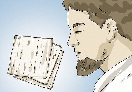 Say the Motzi. Recite the traditional blessing for eating bread, called the ha-motzi, over the matzos.