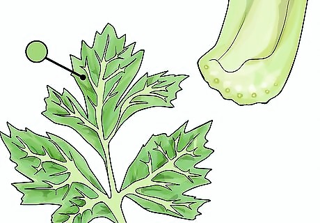 Trim the bottom of the celery stalk. To expose the xylem of the celery and give it the best access to the water, trim the curved end of the stalk. After trimming, the bottom of the stalk should be flat and you should be able to see small dots. What do you think the small dots are?