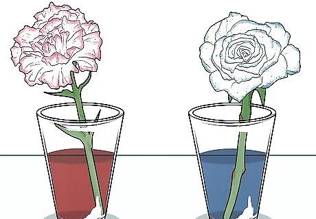 Gather other plants and flowers to test. Do you think this experiment will work with other plants? Get some white flowers such as carnations or roses. Trim the ends of the flower at an angle to help them soak up more water. If you use a red flower and soak it in blue water, do you think the flower will turn purple?
