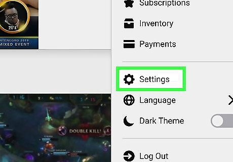 Select Settings in the menu. This will take you to the Settings menu for Twitch.