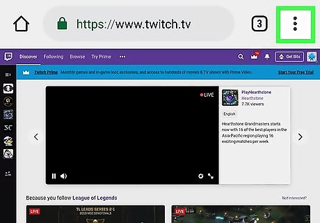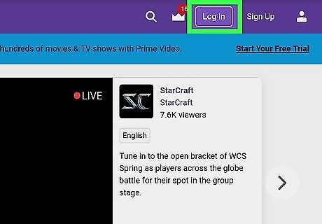 Log in to your Twitch account. Once you have Twitch configured to desktop mode, tap on the purple Log In button in the top-right corner of the page and enter your username and password in the menu that pops up to sign in to your Twitch account.