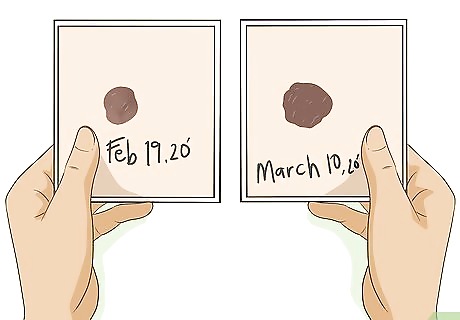 Keep track of lesions. As you perform your body searches and notice any of the three different kinds of lesions, keep track of them. Any suspicious lesion should be photographed and marked in red on your body map. When you do your exam the next month, look for changes. Take another picture and compare the two. If there are any changes, even subtle ones, follow up with your dermatologist. Bring your body map and photos to the appointment so you can show them exactly what has been going on.