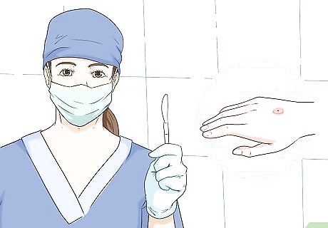 Take care of other skin cancers. The primary treatment for other skin cancers is surgical treatment. The doctor may perform a surgery where the tumor or lesion is cut out all of the diseased skin with clear surgical margins. Another popular surgical treatment option is Mohs surgery. This is a micrographic surgery that is used for non-melanoma skin cancer (NMSC), basal cell carcinoma, and squamous cell carcinoma. These cancers grow in the localized area of the primary tumor, only occasionally metastasize; however, they can be locally aggressive and erode the local tissue and frequently recur. These are the carcinomas most often treated with Mohs micrographic surgery that ensure that a malignant focus is not left at the site of excision, which could be responsible for recurrence.