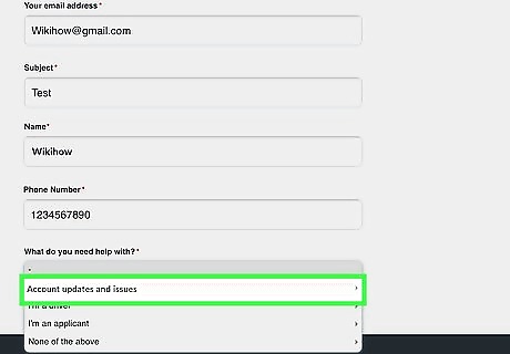 Select Lyft Account in the drop-down box. Tap the drop-down box under the "What can we help you with?" heading at the bottom and select "Lyft Account". This will display another set of options related to your account.