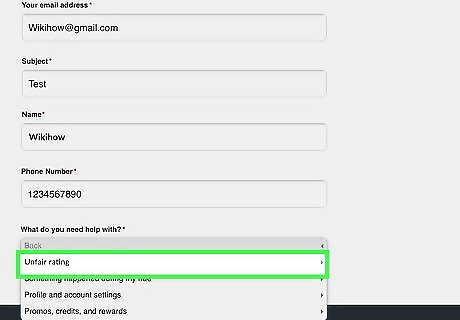 Tap Unfair rating. It's in the last set of options in the drop-down menu. Although you may not think you received an unfair rating, this is the closest option to direct your support request so you can be connected with someone who has access to your passenger rating.