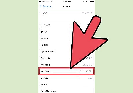 Scroll down to “Version”. Doing so will allow you to see your current version of iOS on the right side of the tab.