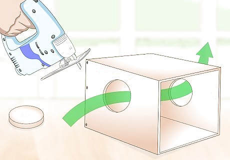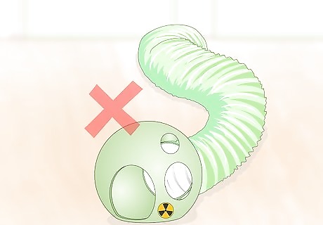 Provide proper ventilation. Whatever type of hideaway you decide on, make sure that it has proper airflow and ventilation. If it doesn’t, your hamster could get sick or suffocate. Ultimately, though, this is easy to avoid. Simply: Screw or cut holes into a wooden or cardboard hideaway. Avoid burying your hideaway into the substrate of your hamster’s habitat. While it might seem cozy to you, this will decrease airflow into it. Avoid using duct tape or other adhesive products to keep module pieces together.