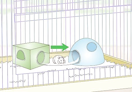 Wash your hamster's hideaway once a week with soap and warm water. Routinely cleaning your hamster's hideaway will prevent any mold or bacteria from growing on it. Avoid using harsh cleaning products to clean the hideaway.