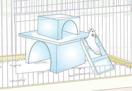 Pick a multi-level hideaway for more room. A multi-level hideaway will give your hamster the option of sleeping or resting at different levels. Purchasing a multi-level hideaway will not only make your hamster cage look cool, but it will add excitement to your hamster’s life. Multi-level hideaways tend to be more expensive than single-level hideaways. If you go with a multi-level hideaway, make sure it's not so tall that your hamster could use it to escape its cage.