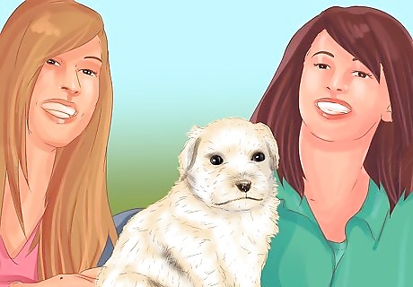 Bring the family to meet the puppy. A responsible breeder will encourage you to make multiple visits. They will want you to take your time to make a decision about purchasing and owning a puppy. They will also want you to bring the whole family to meet the puppy. Let other family members interact with the puppies individually. This way, you and your family can come to consensus about which puppy you like the most and want to bring home.