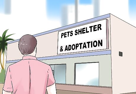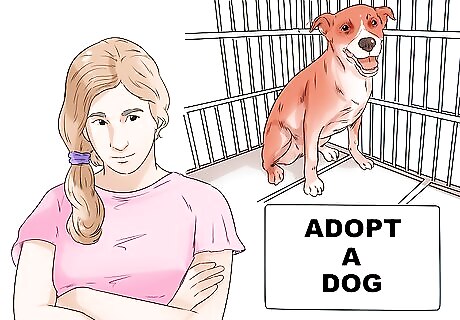 Visit a local shelter. Before deciding to buy a dog from a breeder, visit some local animal shelters. Most municipalities have many animal shelters. Some of these may be no-kill facilities, but many will euthanize dogs that are not adopted. Visit several shelters in person and online to see if you can find a dog that fits your lifestyle and desires.