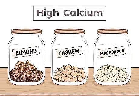 Opt for almond, cashew, or macadamia nut milk for something that's rich in calcium. While all dairy milk has calcium, the same cannot be said of all nut milk. If you need more calcium in your diet, select a type of nut milk that is high in calcium. Almond, cashew, and macadamia nut milk are all high in calcium, whereas hazelnut, walnut, and peanut milk are all low in calcium. Unfortunately, nut milk that is high in calcium will be low in protein, and vice versa. That means you’ll have to select between one or the other, not both.