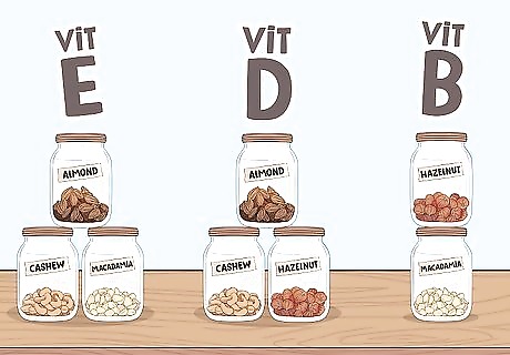 Look for a type of nut milk that has the vitamins you need. Different types of nut milk are high in different types of vitamins. For example, almond, cashew, and macadamia nut milk are all high in vitamin D. Almond, cashew, and hazelnut milk are all high in vitamin E. Macadamia nut and hazelnut milk are both high in types of vitamin B. Walnut milk is also high in omega 3 fatty acids.