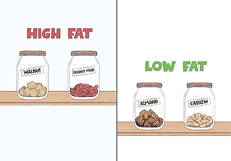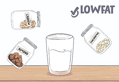 Choose almond or cashew milk if you’re watching your fat intake. Dairy milk comes in different fat contents, such as skim, 1%, 2%, and homo. However, nut milk doesn’t have the same levels of fat content. Macadamia nut, hazelnut, walnut, and peanut milk are all high in fat (more than 4 grams (0.14 oz) per 1 cup (240 mL)). Therefore, if you’re watching your fat intake, you’ll want to stay away from these types of nut milk. Walnut and peanut milk have the highest levels of fat, at 11 grams (0.39 oz) per 1 cup (240 mL). Whereas, cashew milk has the lowest level of fat, at 2 grams (0.071 oz) per 1 cup (240 mL).