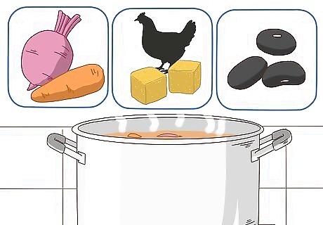 Cook a homemade soup. Soups made with vegetable or chicken stock and packed with a variety of vegetables, lentils, and beans are an excellent way to stay warm and healthy during the winter. Try making a soup that contains heart healthy vegetables and proteins, such as winter squash, carrots, beets, or black beans. Avoid purchasing canned soups. These often contain excessive amounts of sodium.
