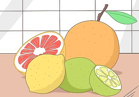 Incorporate more citrus in your diet. Citrus fruits, such as lemons, limes, oranges, and grapefruits are great for your heart. They contain vitamin C as well as flavonoids, which boost high-density-lipoprotein cholesterol and lower low-density-lipoprotein cholesterol. This can lower the risk of heart disease and stroke.