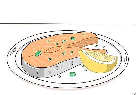 Eat salmon. Wild salmon contains omega-3 fatty acids, which can help decrease your likelihood of developing heart disease. Salmon also contains high levels of selenium, an antioxidant that can boost heart health. Most major grocery stores will contain a fresh seafood section year round and you should be able to purchase salmon during the winter months.