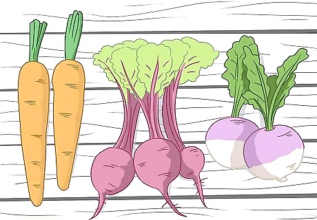Try eating root vegetables. Many root vegetables, such as carrots, beets, and turnips can continue to grow and survive in the harsh winter climate. These vegetables also contain many vitamins and minerals, such as vitamin C and vitamin A as well as beta-carotene, which is great for your heart. Roast root vegetables to eat as a side dish. Try checking to see if there is a winter farmers’ market in your area. You may be able to find locally grown root vegetables there.
