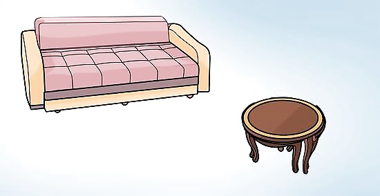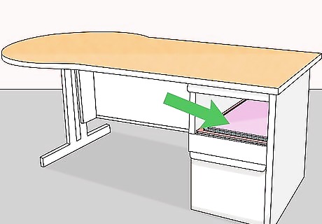 Purchase pieces that are designed to be stored. Look for furniture that is meant to tuck away neatly when not in use. Many kitchen and dining sets are available that can store chairs within the table. Likewise, many contemporary furniture design stores and warehouses offer pieces that looks good when out, but can fold away to store. Wall-mounted tables that fold up to function as poster frames or mirrors are popular choices for both dining spaces and desks. Furniture on wheels, such as a coffee table on casters, also makes moving and storing furniture easy. Murphy beds that fold up into the wall are great to use in a guest room that doubles as an office.